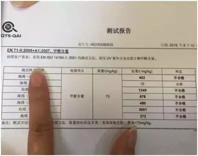 也有人说,甲醛会溶于水。可经实验室人员人工手洗5次后,送检结果显示,甲醛含量依然超标。