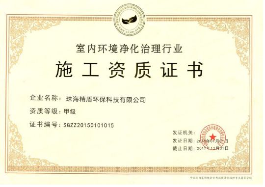 除甲醛企业是否拥有专业的室内空气净化施工资质